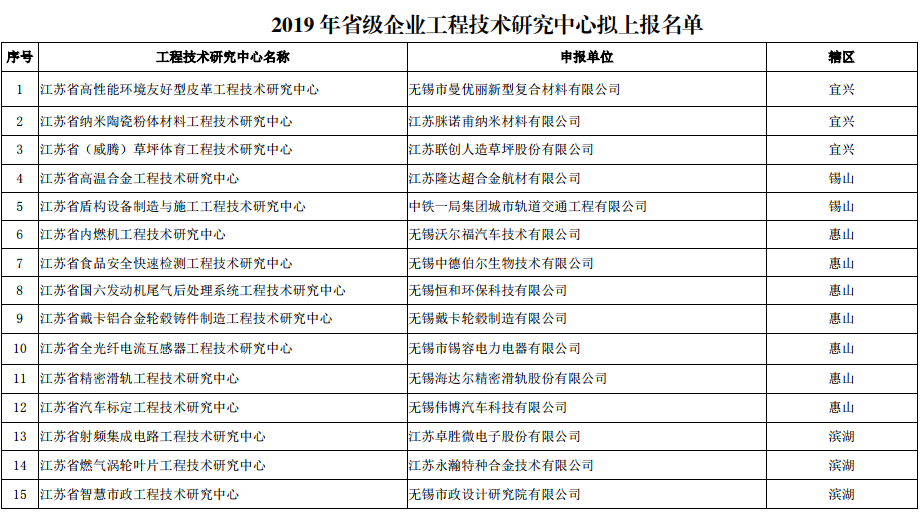 根據(jù)《關(guān)于做好2019年省級(jí)企業(yè)工程技術(shù)研究中心及省級(jí)企業(yè)院士工作站建設(shè)工作的通知》(蘇科研函〔2019〕264號(hào))和《關(guān)于下放省級(jí)工程技術(shù)研究中心和省級(jí)企業(yè)人才站點(diǎn)管理權(quán)限的通知》(蘇科條發(fā)〔2015〕136號(hào))的要求,受省科技廳委托,科技局對(duì)申報(bào)2019年省級(jí)企業(yè)工程技術(shù)研究中心的項(xiàng)目進(jìn)行了評(píng)審。現(xiàn)將擬上報(bào)結(jié)果進(jìn)行公示,公示時(shí)間5個(gè)工作日(自2019年8月26日至8月30日)。 任何單位和個(gè)人如對(duì)公示項(xiàng)目有異議,可在公示期內(nèi)以書面形式提出,并列舉異議理由和相關(guān)證明材料。以單位名義提出的,需加蓋單位公章;以個(gè)人名義提出的,需寫明自己的真實(shí)姓名、單位、職務(wù)職稱、聯(lián)系地址及電話等。 監(jiān)督電話:81821912 咨詢電話:81821907?![]()